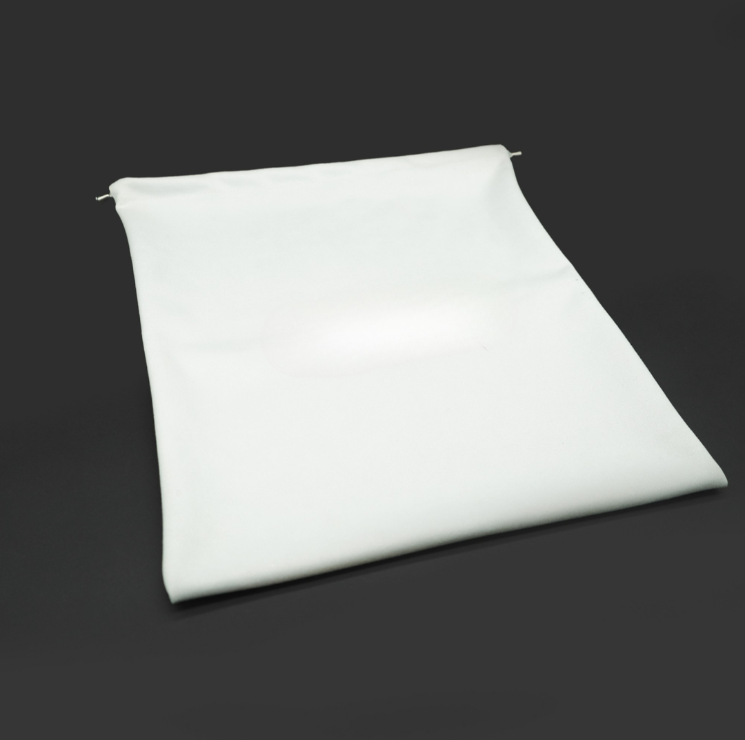 Nuestro cubre polvo está fabricado con tela Gamuza, un material suave, resistente y elegante, ideal para proteger tus productos del polvo y la humedad.